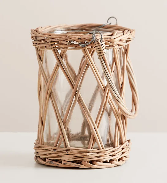 • Exclusive country-chic wicker glass vase, featuring a clear glass vase with a wicker shell; can later be used as a candleholder; measures 6.75″H (available with 10 stems)